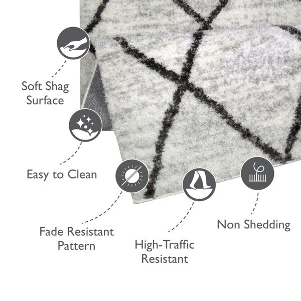 Ardita Area Rug with Soft Shag in Trellis Gray/Charcoal, 6-Foot-7-Inch by 9-Foot-6-Inch