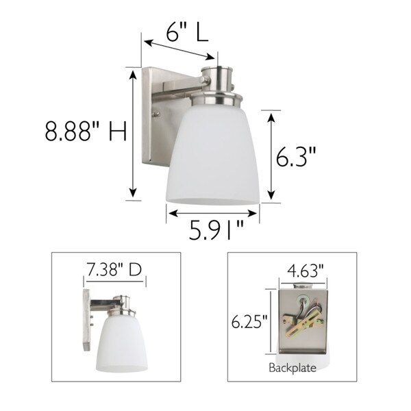 - One Light Wall Sconce: Uses one 60-watt medium base bulb or LED equivalent (not included)