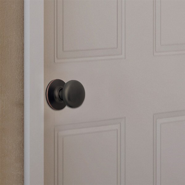 The Design House 753020 Cambridge Universal Latch Passage Door Knob is finished in oil rubbed bronze and is best suited for bedrooms or closets and does not lock. This knob fits the two most common backsets in the U.S. (2-3/4-inch and 2-3/8-inch). The 1/2-inch latch bolt is plated in nickel and does not budge once in place. This flat ball knob does not include keyed cylinders. Passage knobs do not lock and are used in bedrooms and closets. Use this knob on standard 1-3/8-inch and 1-3/4-inch thick doors. his product has a 1-inch drive-in latch, 2-1/4-inch radius corner face plate, and square corner face plate, and 5-pin security. If you are preparing your door for installation, the cross bore should be 2-1/8-inches in diameter and the edge bore should be 1-inch in diameter. This product is ANSI Grade-3 certified, which means this knob is rated for residential security. Designed and manufactured by Design House, the trusted source for quality lighting, hardware, plumbing, kitchen, and bath products for every taste and budget.