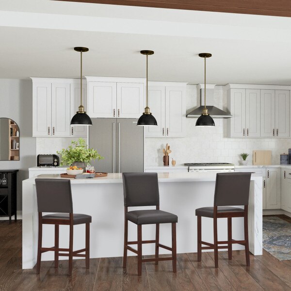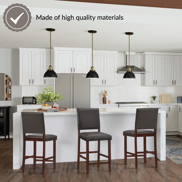 The Leick Home Brax 10086CP/EB Upholstered Counter Stools offer the perfect fit for kitchen counters, islands, and dining areas, bringing style, comfort, and durability to your space. Featuring a cappuccino solid wood base paired with ebony faux leather upholstery, these stools provide a sophisticated contrast that suits modern, contemporary, and transitional decor styles. The flared backrest offers ergonomic support, while the crowned high-density foam seat cushion ensures lasting comfort. Designed to fit counter heights of 36 to 39 inches, these counter stools are ideal for kitchen counters, high-top dining tables, and home bars. For an optimal seating arrangement, allow at least 6 inches of space between stools to maximize comfort. Designed for hassle-free assembly in just minutes, these stools include all necessary tools and instructions, allowing you to enjoy sophisticated style and functionality without the wait. Leick Home's 150-year commitment to craftsmanship and customer satisfaction ensures a worry-free purchase with a 1-year limited warranty.