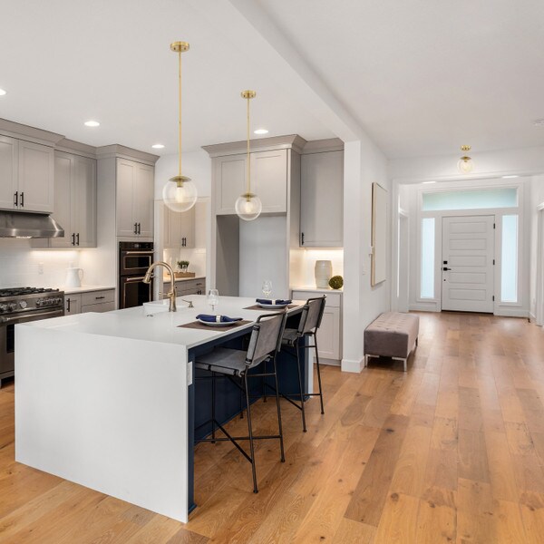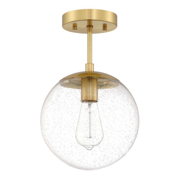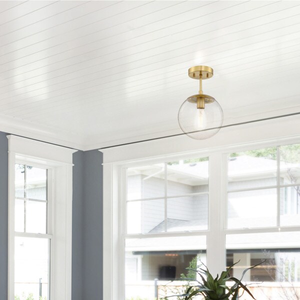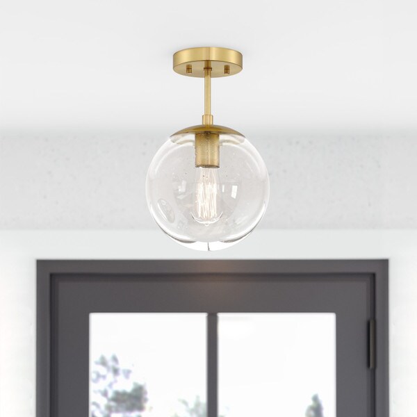 - Ideal for kitchens, bedrooms, hallways, entryways, closets and more, this modern ceiling light has a modern satin gold finish and a Clear, seedy glass globe shade