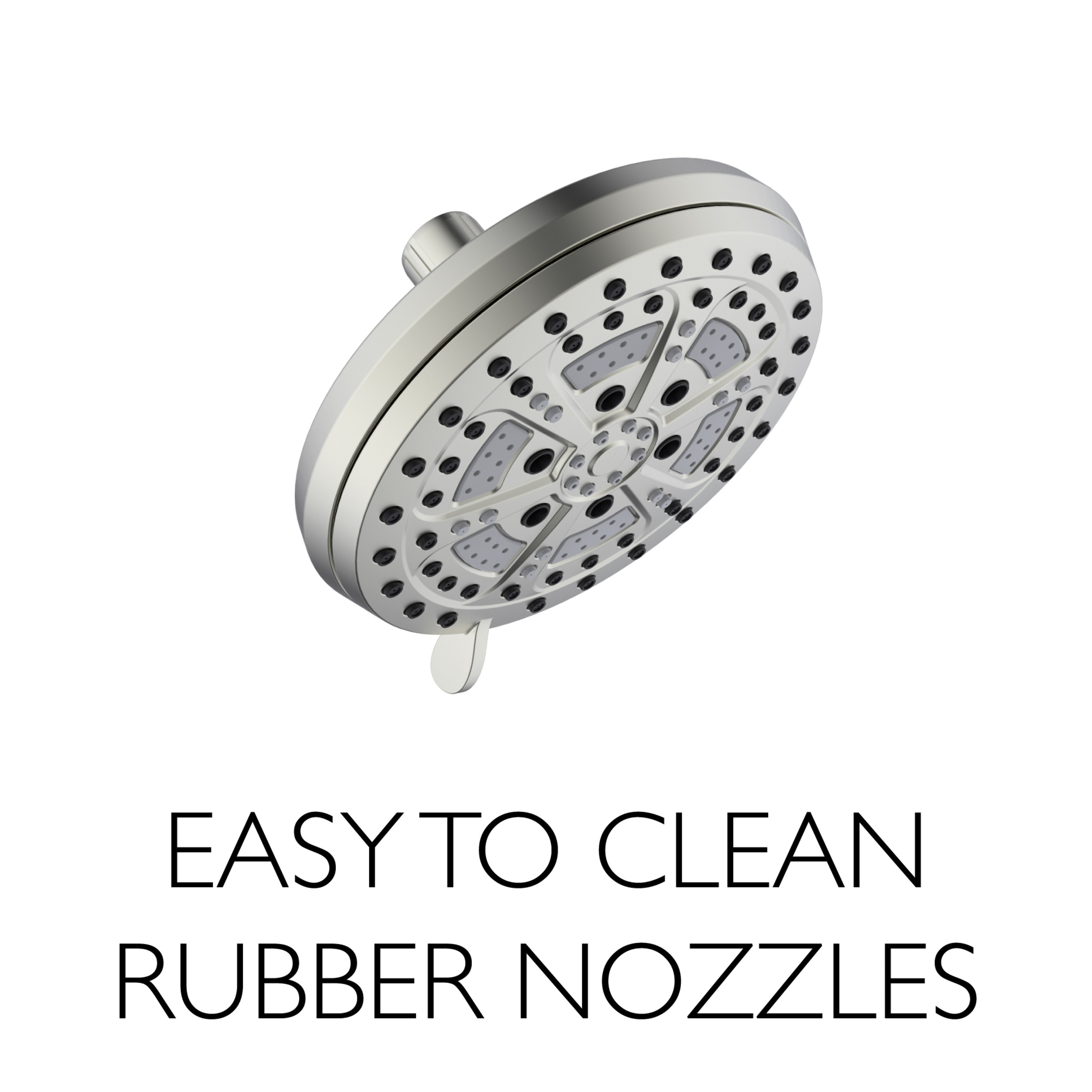 - Choose between 6-functions: spray, pressure, massage, power spray, spray + massage and eco-drip functions using the showerhead dial
