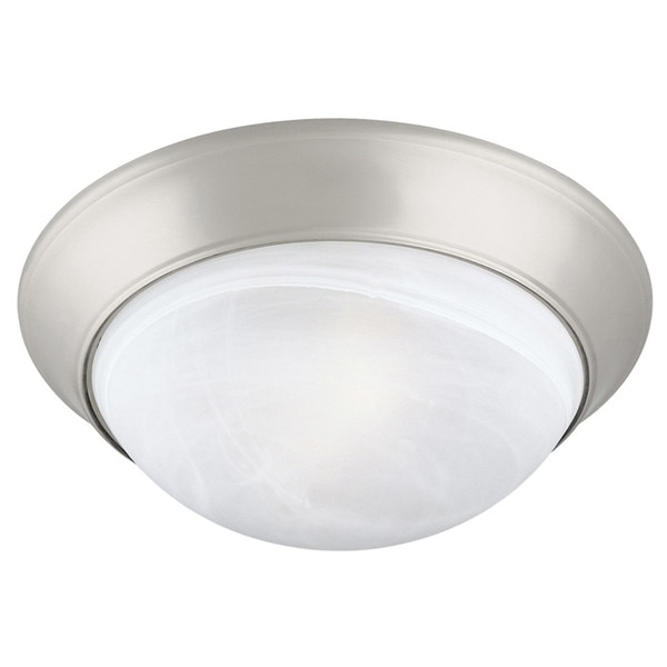 The Design House 503201 Ceiling Light is simplistically stylish. This understated metal flush mount will boost the brightness in any room inside your home. This fixture features a modern satin nickel finish that easily complements contemporary and traditional decor arrangements. A dome-shaped, alabaster glass shade tops the look, diffusing a warm glow of light to your space below. Twist-off shade makes changing light bulbs a breeze.