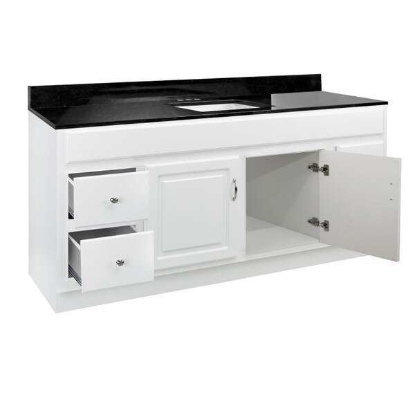 Vanity Combo Kit, Concord Ready to Assemble Vanity Base in White with Granite Rectangular Bowl Top in Black Pearl, 61-Inch